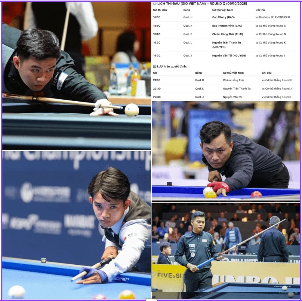 Round Q là cuộc chiến khốc liệt với 16 bảng đấu (mỗi bảng 3 cơ thủ). Các cơ thủ Việt Nam sẽ thi đấu 2 trận vòng bảng, và chỉ người đứng đầu bảng mới được đi tiếp.