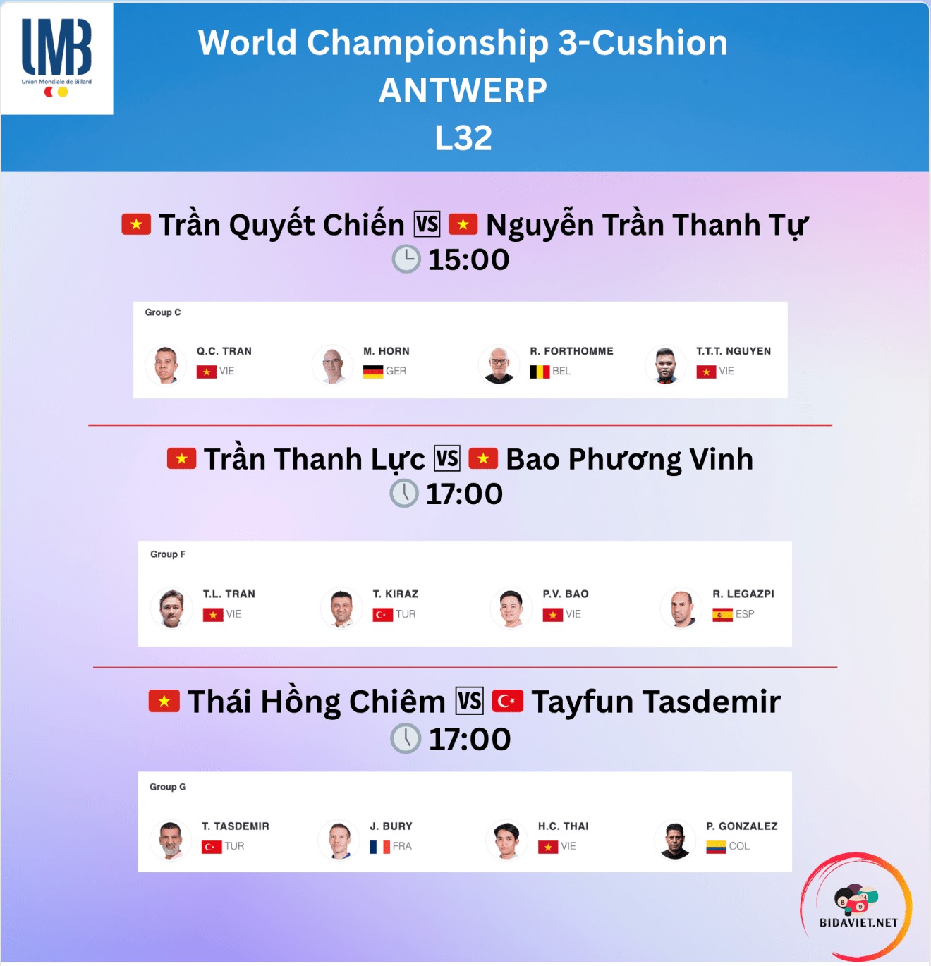 🇻🇳 5 Việt Nam cơ thủ góp mặt tại vòng L32: Trần Quyết Chiến,Bao Phương Vinh, Nguyễn Trần Thanh Tự, Trần Thanh Lực, Thái Hồng Chiêm.